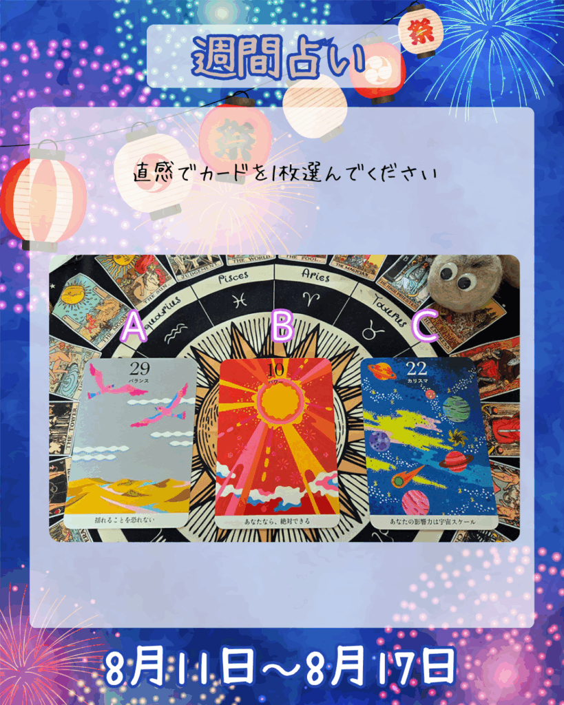 こんにちは、ブルーベルです。 8月もいよいよ最終週ですね。暑さが苦手で夏は少ししんどい…と思うのに、いざ終わりが近づくと寂しく感じてしまいます。毎年この不思議な気持ちになるのは、私だけでしょうか?(笑) それでは、週間占いをやっていきます🔮... -